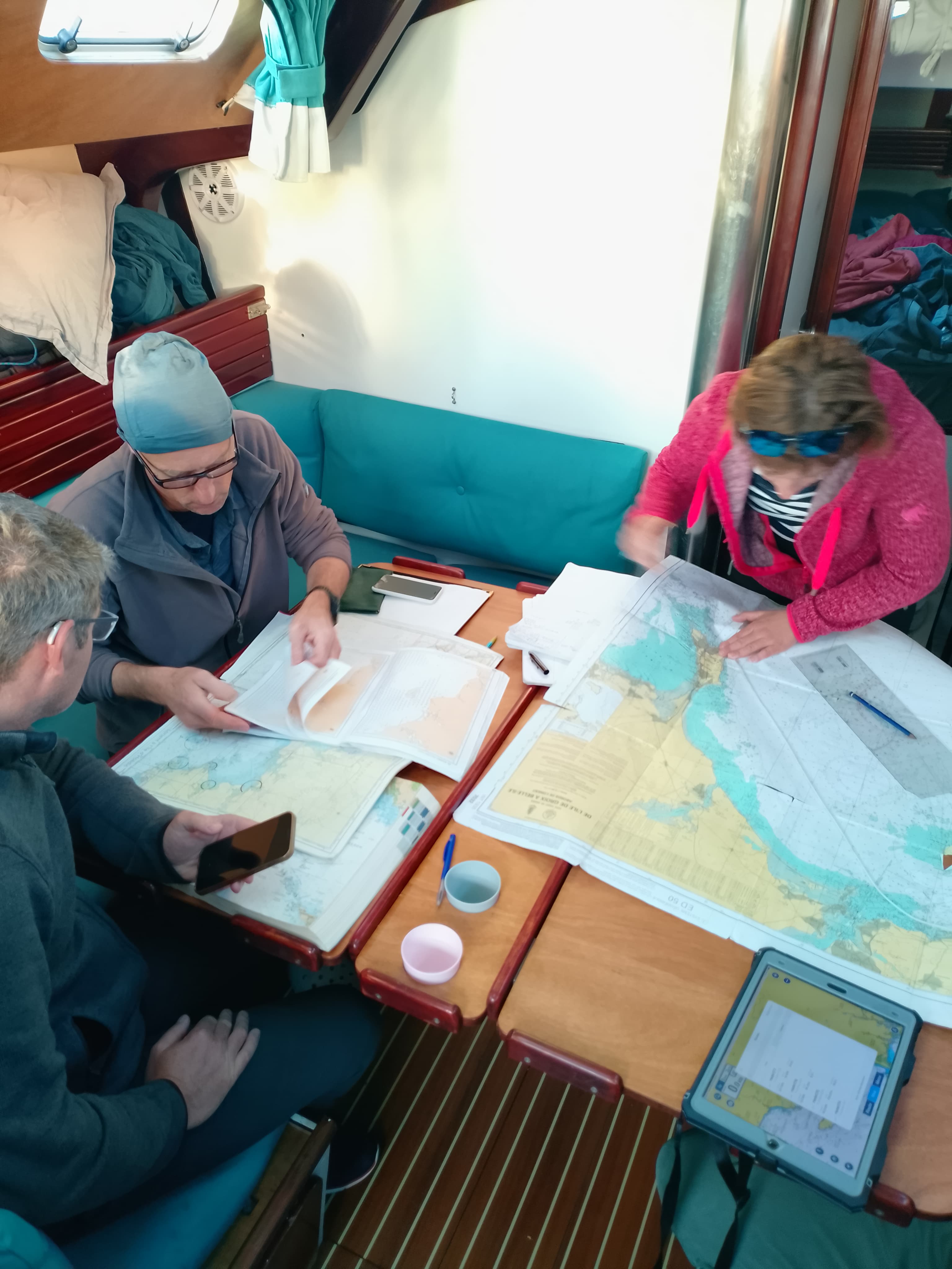 - cartographie et navigation : choix de la route en fonction de la météo et de la marée, exercices de cartes papier et numérique